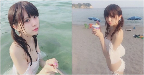 色比基尼下水濕透透....胸前「微嫩山丘」白裡透粉紅